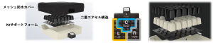 30個の格子状エアセルが自動で膨張・収縮し、圧力を3つのセクションに分散。さらに、